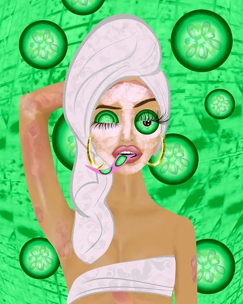 The more I played around with my self portraits, the more realistic they got. I mean, I don't actually have cucumbers for eyes or a long lizard tongue but I do have psoriasis!